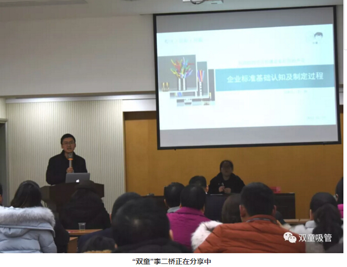 在年會(huì)中有一項(xiàng)重要議程,就是由“雙童”總經(jīng)理李二橋?yàn)榇蠹規(guī)?lái)《企業(yè)標(biāo)準(zhǔn)基礎(chǔ)認(rèn)知及制訂過(guò)程》的課程分享!在介紹了標(biāo)準(zhǔn)工作的制定過(guò)程和對(duì)企業(yè)的意義作用后,李總也鼓勵(lì)在座企業(yè)主們,不管是經(jīng)營(yíng)什么企業(yè)、制造什么產(chǎn)品,都應(yīng)該盡可能地爭(zhēng)取和參與到標(biāo)準(zhǔn)制定工作中,在規(guī)則的制定過(guò)程中搶占“制高點(diǎn)”,在同類產(chǎn)品的市場(chǎng)競(jìng)爭(zhēng)中贏得先機(jī),為自身企業(yè)的發(fā)展贏取更高平臺(tái)!李總干貨滿滿的分享也獲得了現(xiàn)場(chǎng)會(huì)員們的熱烈掌聲!