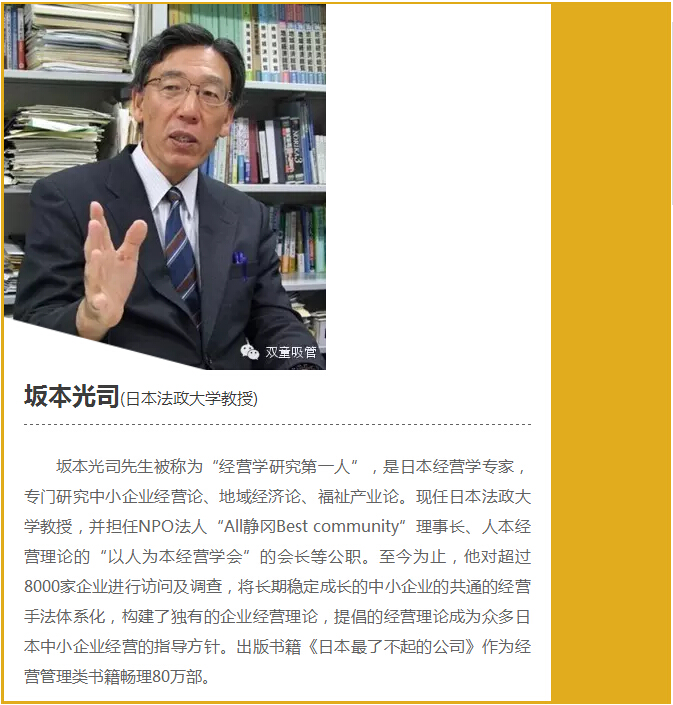 早在2016年,坂本光司老師就曾帶隊來到“雙童”實地參觀,并和“雙童”樓仲平進行了深度交流,高度認可了“雙童”的人本經(jīng)營模式。在此后,不斷有日本企業(yè)主團隊來“雙童”調研學習,樓仲平也數(shù)次受邀前往日本各所大學授課,分享“雙童”的利他經(jīng)營理念和企業(yè)文化,引發(fā)了日本企業(yè)界的強烈關注!