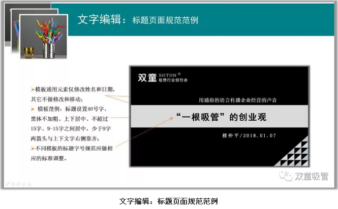 對PPT的空間進行設(shè)置之后,文字編輯的標準規(guī)范也是制作PPT的重中之重!樓仲平和同學們詳細分享了模板文字設(shè)計標準規(guī)范、標題的文字編輯規(guī)范,章節(jié)頁文字標準規(guī)范、正文的文字編輯規(guī)范、正文分段行間標注規(guī)范等文字編輯的規(guī)范要求。
