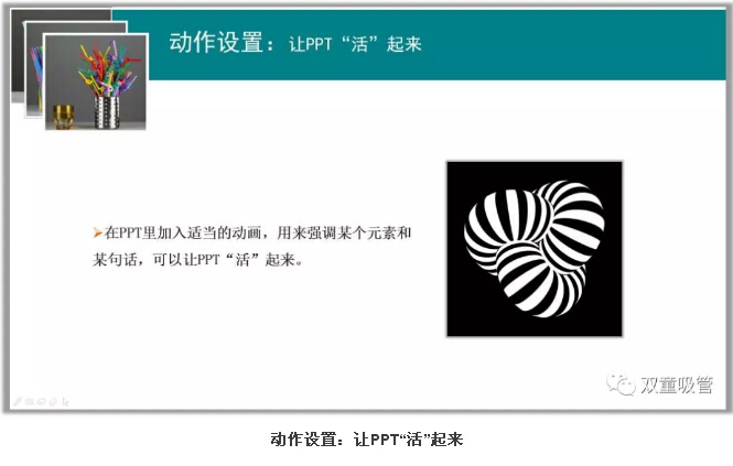 制作PPT除了以上的技巧外,PPT內(nèi)容關(guān)鍵詞句的提煉、配圖素材的選擇和準備、照片的處理、動畫的設(shè)置、視頻鏈接的添加也是讓PPT更加美觀的因素!