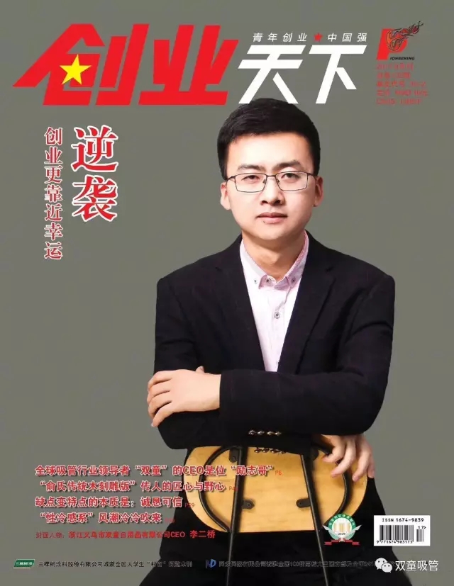 今天,吸管妞和大家分享著名雜志《創(chuàng)業(yè)天下》的封面新聞!這篇新聞講述了“雙童”李二橋從一個農(nóng)村毛頭小伙成長為全球吸管王國CEO的勵志經(jīng)歷。下面,吸管妞就帶大家來看看吧!