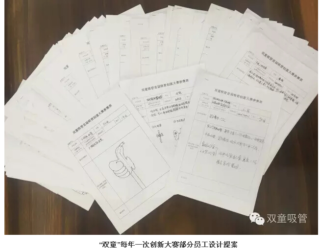 除此之外,“雙童”動員內(nèi)部全體員工進(jìn)行思維創(chuàng)新,在公司舉行吸管創(chuàng)新大賽,收集到了不少優(yōu)秀的創(chuàng)新提案。另一方面,“雙童”也陸續(xù)與浙江師范大學(xué)、北京服裝大學(xué)、中國塑料工業(yè)研究所等機(jī)構(gòu)建立長期合作,從而逐漸形成了規(guī)范的研發(fā)性低成本創(chuàng)新之路!