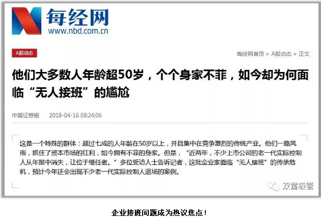中國(guó)經(jīng)歷三十多年的改革開(kāi)放,誕生了一大批的民營(yíng)企業(yè)家,他們所創(chuàng)辦的企業(yè),成為各行各業(yè)的翹楚。根據(jù)“新財(cái)富 500 富人榜”的數(shù)據(jù)顯示,我國(guó)50 歲以上民營(yíng)企業(yè)家占比為 67%,這意味著近七成的中國(guó)家族企業(yè)需尋找接班人。這意味著未來(lái)五到十年內(nèi),我國(guó)將有300萬(wàn)家民營(yíng)企業(yè)面臨接班換代的問(wèn)題。但是,二代能真正順利接班嗎?在接班后能否繼續(xù)傳承家業(yè)?這是最關(guān)鍵的問(wèn)題,或許又是最沉重的話題。
