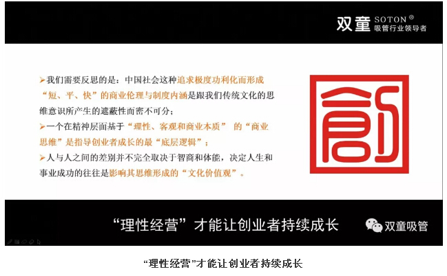 當(dāng)我們透過現(xiàn)象看本源,雙童的“創(chuàng)業(yè)觀”,實(shí)質(zhì)是單點(diǎn)突破、拉大尺度、尋求質(zhì)變、基于長遠(yuǎn)發(fā)展的“理性思維”,實(shí)質(zhì)是“理性思維”下的“科學(xué)發(fā)展觀”!