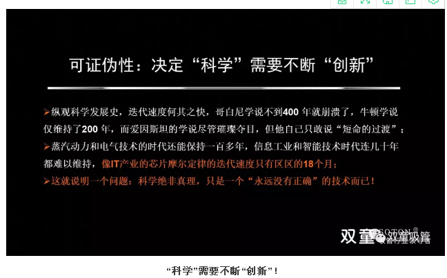 關(guān)于到底什么是“科學(xué)”?著名經(jīng)濟(jì)學(xué)家波普爾提出了“證偽主義科學(xué)論”對(duì)“科學(xué)”進(jìn)行了界定:凡是能夠證明是錯(cuò)了的學(xué)問才能叫“科學(xué)”,并用極厚的一本書作了系統(tǒng)證明,這跟我們平常的理解正好相反。這就說明一個(gè)問題:科學(xué)絕非真理,只是一個(gè)“永遠(yuǎn)沒有正確”的技術(shù)而已!“科學(xué)”需要不斷“創(chuàng)新”!