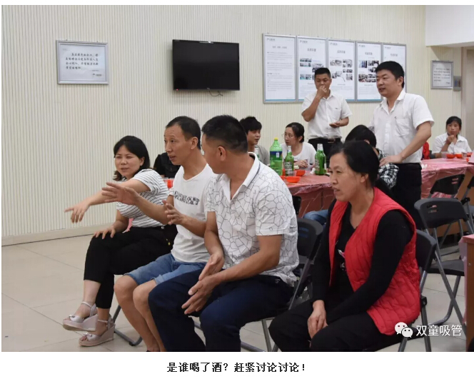 現(xiàn)場最有趣的就屬“猜猜誰喝了酒”的小游戲啦!兩個團(tuán)隊進(jìn)行PK,猜中對方團(tuán)隊中誰喝了白酒即為獲勝。喝完“水”和“酒”后,有些隊員臉上的表情沒有任何變化,有些隊員拼命在掩飾……兩輪游戲過后,居然沒有任何一隊猜中了喝酒者??磥?,要給大家都頒一個“奧斯卡小金人”獎項呀!