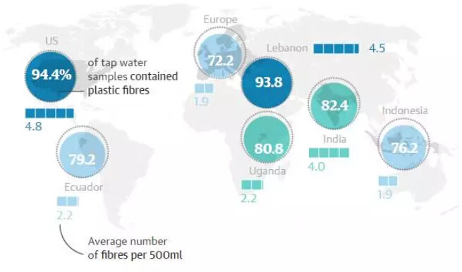 原來,全球多國自來水中都存在微塑料污染。