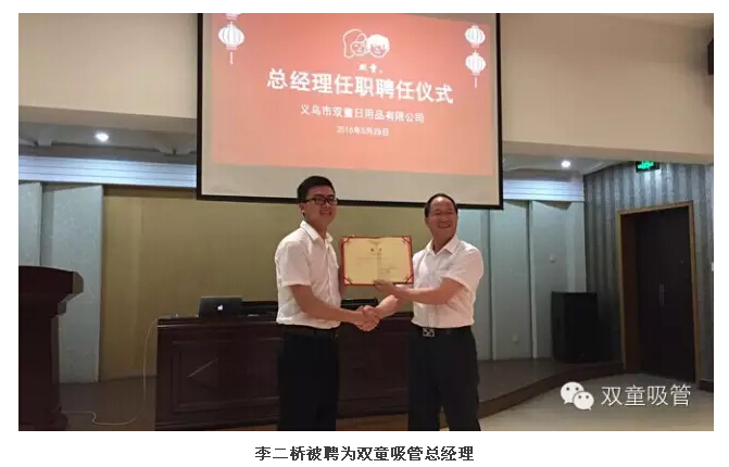 “當(dāng)時(shí)我就明確,李二橋,不僅是CEO,將來干得好也可能是公司的接班人。他是農(nóng)村小伙,2001年初中畢業(yè)后到“雙童”做操作工。他是我在十五年的時(shí)間里一步步 “帶”出來的。選擇李二橋做總經(jīng)理,我是經(jīng)過長(zhǎng)時(shí)間考量,尤其這4年,他跟我一個(gè)辦公室,我?guī)缀跆焯煸谟^察、了解這個(gè)小伙子。他勤奮、踏實(shí)、懂技術(shù),在公司任勞任怨,從未計(jì)較個(gè)人的眼前利益,這一點(diǎn)非常難能可貴,我覺得將來把企業(yè)交給這樣的人,放心?!?/span>