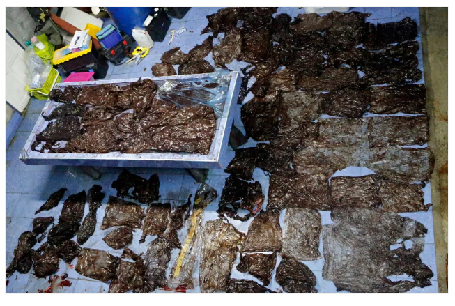這只小領(lǐng)航鯨艱難吐出5個(gè)塑料袋,