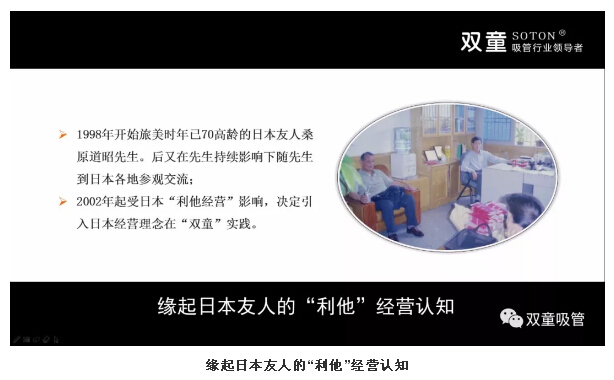1998年,“雙童”樓仲平結(jié)識(shí)了一位旅美日本友人桑原道昭先生。桑原道昭先生在美國(guó)待了45年,會(huì)一點(diǎn)漢語。他會(huì)和樓仲平交流做生意的看法,并用日本人的視角和思想解讀節(jié)能環(huán)保、節(jié)約土地、員工關(guān)懷等方面的話題。