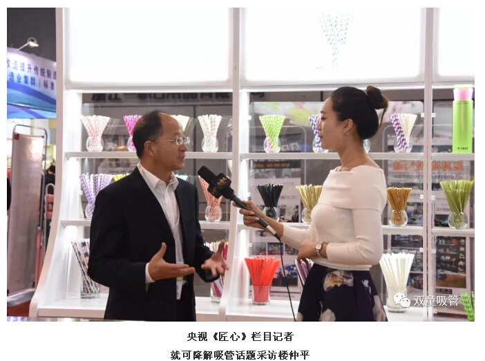 與以往不同的是,今年的“雙童”展區(qū)展示著眾多可降解吸管,他們成為了展會“明星”,吸引了大批新老客戶駐足采購。