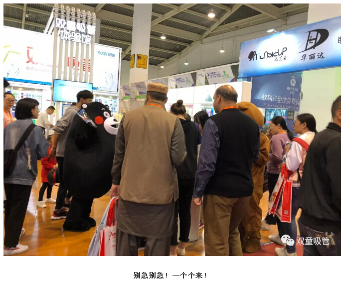 在網(wǎng)紅熊帶領(lǐng)下,“掃一掃送創(chuàng)新吸管”的活動讓來往的客商們“欲罷不能”,現(xiàn)場十分火爆哦!別急別急!一個個來,妞可是準備了很多呢!