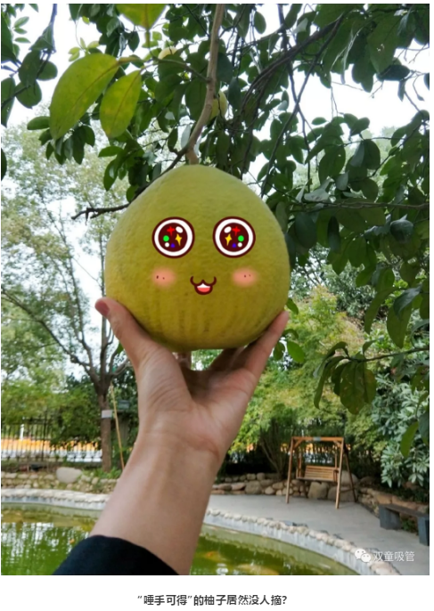 吸管妞還發(fā)現(xiàn),有幾個(gè)柚子長(zhǎng)得非常的低,真的可以用“唾手可得”來(lái)形容,可是……竟然沒(méi)有吃貨來(lái)摘?這是怎么回事呢?