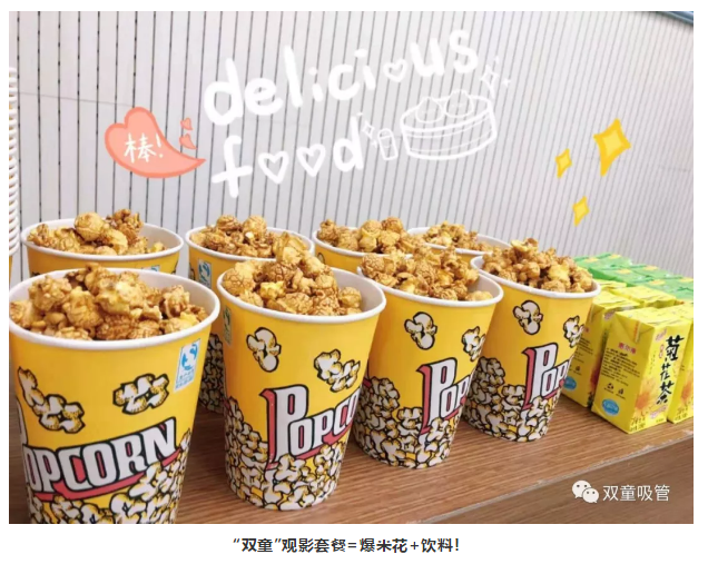 電影開始之前,大家早早的就來排隊領(lǐng)取“雙童”觀影標(biāo)配套餐:爆米花+飲料!還有小觀眾甚至自帶了放大版爆米花桶,對吸管妞說:“我今天的愿望就是把這桶裝滿!我和小伙伴就要這一桶!”吸管妞當(dāng)然要滿足他們的愿望啦,不夠還可以續(xù)“桶”哦