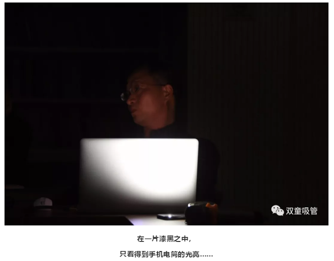 原來,是在“雙童”學(xué)習(xí)會(huì)現(xiàn)場(chǎng),突然碰到了停電的情況。