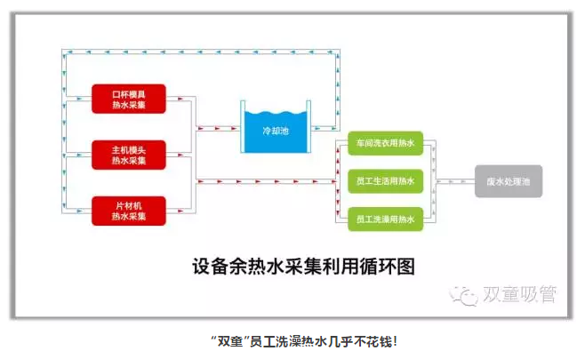 在2003年新建廠房之初,“雙童”就全面考慮到能源節(jié)約和排放的控制,實(shí)施了設(shè)備余熱水循環(huán)系統(tǒng)以及設(shè)備余熱采集系統(tǒng)。