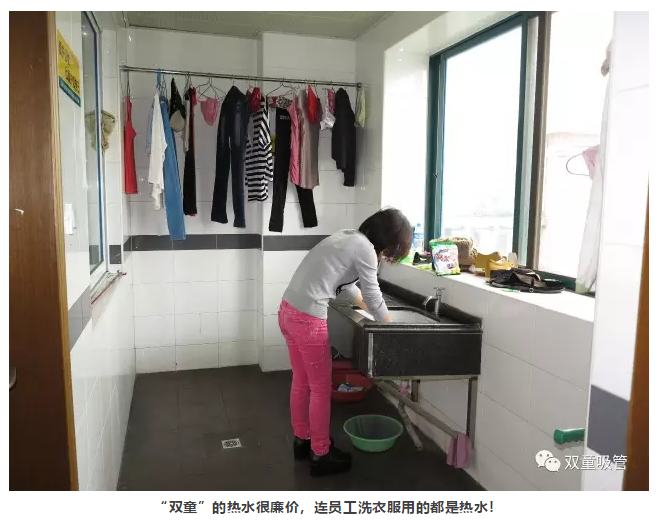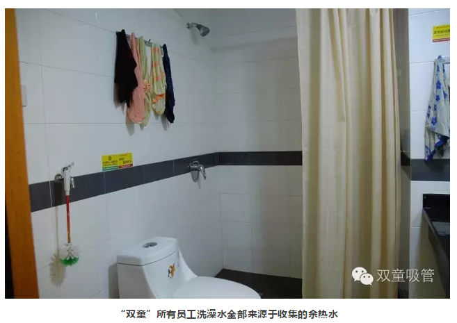 2004年,“雙童”實(shí)施了余熱水采集利用之后,解決了員工洗澡等生活所用熱水的問題,徹底消滅了原來鍋爐燒煤供水的污染。