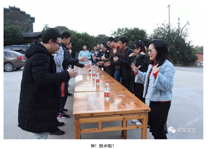 咦!這是發(fā)生了什么?原來(lái),這是“雙童”人在一起在做團(tuán)建熱身活動(dòng)——搶礦泉水呢!