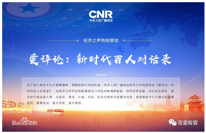 近日,中央人民廣播電臺經(jīng)濟(jì)之聲播出《愛評論:新時(shí)代百人對話錄》改革開放四十周年特輯。其中,也播出了經(jīng)濟(jì)之聲首席評論員陳愛海對話“雙童”樓仲平的專訪節(jié)目!