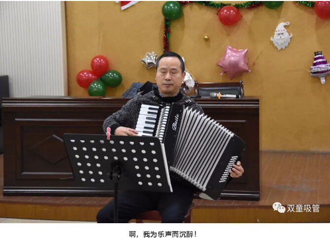 吃飽喝足后,我們的大招就要上線啦!聽,是手風(fēng)琴的聲音!進出口公司的張總和他的夫人宋女士手風(fēng)琴“匯報演出”震撼登場!《鴻雁》、《賣報歌》、《紫竹調(diào)》……一曲接著一曲,樂聲美妙,讓人沉醉!