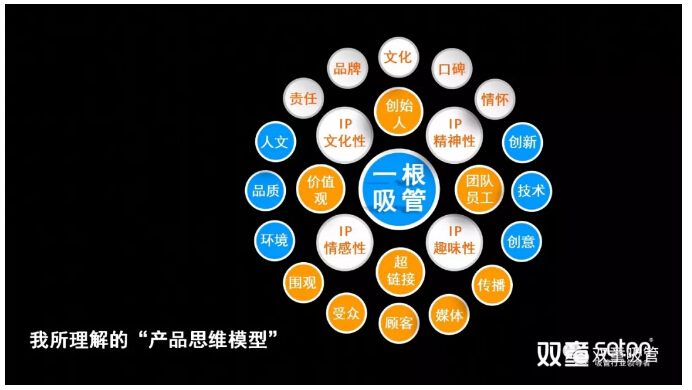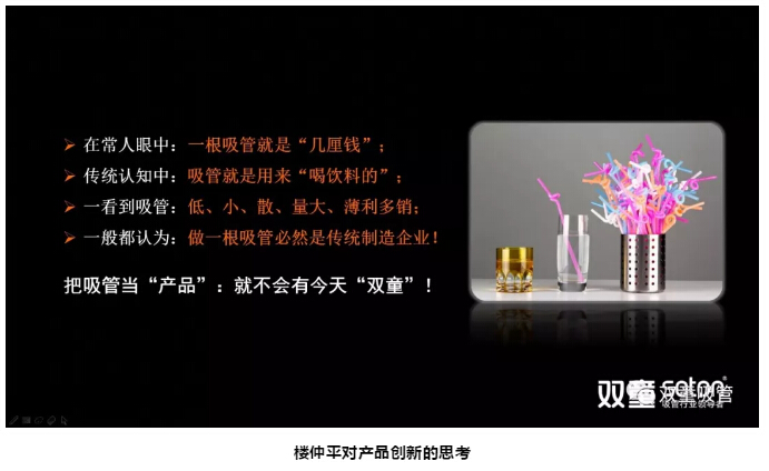 讓員工們自身對“產(chǎn)品”和“商品”有所思考之后,樓仲平以“一根吸管”為例,詮釋了全新思維的“產(chǎn)品認知模型”: