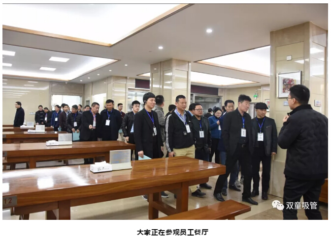 從博物館出來(lái)后,大家來(lái)到了“雙童”的員工餐廳參觀!李二橋也介紹道:“‘雙童’有95%以上都是外來(lái)農(nóng)民工,除了給員工提供良好的就餐環(huán)境之外,員工在餐廳就餐全免費(fèi),員工家屬到餐廳就餐也享受半價(jià)優(yōu)惠!”大家對(duì)“雙童”的員工關(guān)懷都十分認(rèn)可!