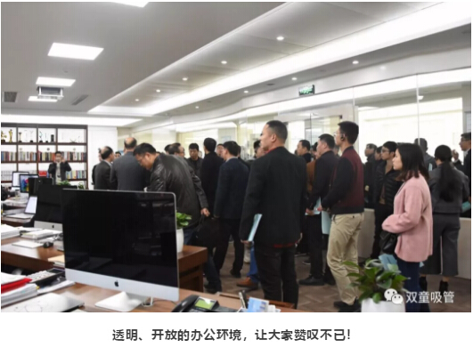 隨后,大家來(lái)到了行政辦公區(qū),“雙童”李二橋也介紹道:“‘雙童’七八十號(hào)行政員工都在這里進(jìn)行集中辦公,老板也從獨(dú)立辦公室里解放出來(lái),和大家坐在一起辦公!”如此平等、透明、開(kāi)放的辦公環(huán)境,也讓大家贊嘆不已!