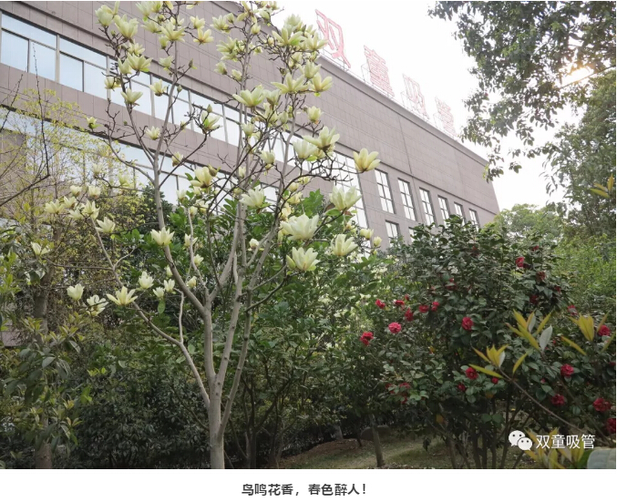 春天的“雙童”,鳥鳴花香,春色醉人! 桃花、 玉蘭花、茶花……真是“百般紅紫斗芳菲”呀!