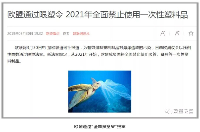由于塑料制品對環(huán)境和動物造成的傷害,全球掀起了限塑熱潮!世界各國也都發(fā)起了“最后一根塑料吸管”運(yùn)動,越來越多的機(jī)構(gòu)都開始拒用塑料吸管……