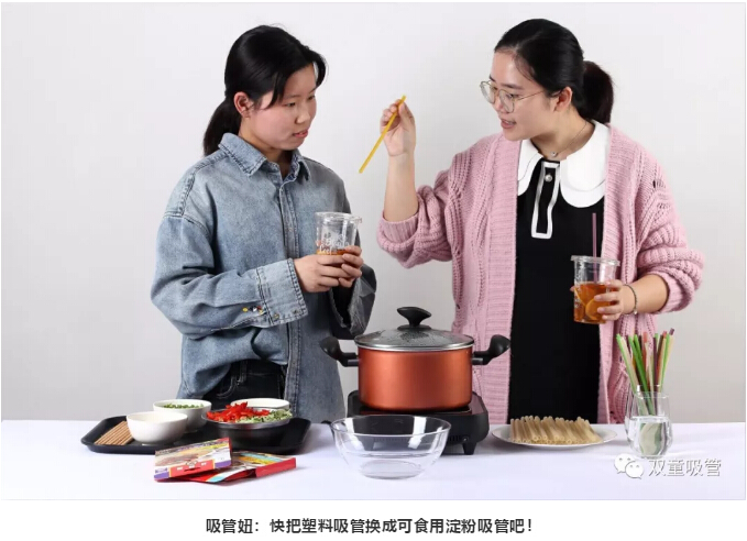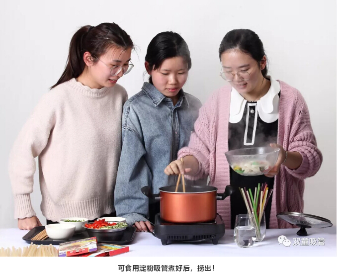 “雙童”可食用淀粉吸管變身湯面