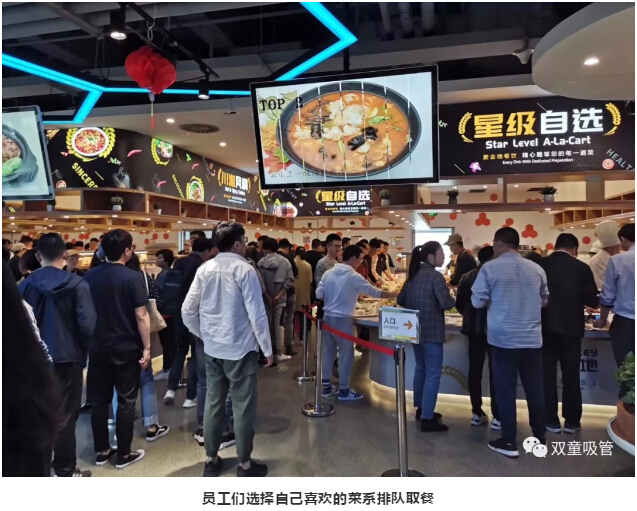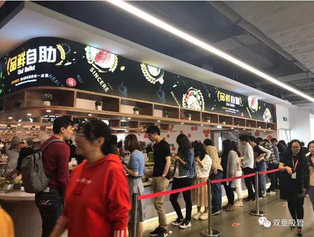 杭州西溪總部的阿里食堂一共有5個(gè)食堂,每天有2萬余人在這里就餐!