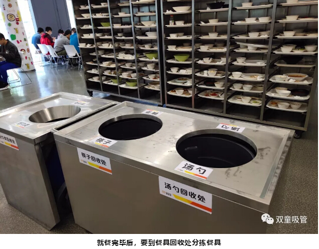 就餐結(jié)束后,我們跟著阿里員工來到餐具回收處,將紙巾、飲料瓶、筷子、湯勺等進(jìn)行分揀,放入傳送帶中方可離開,不用洗碗的人生真是太幸福啦!