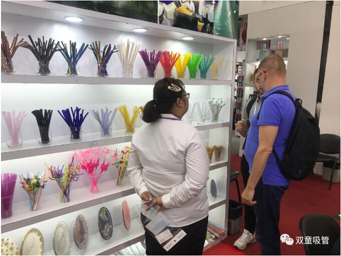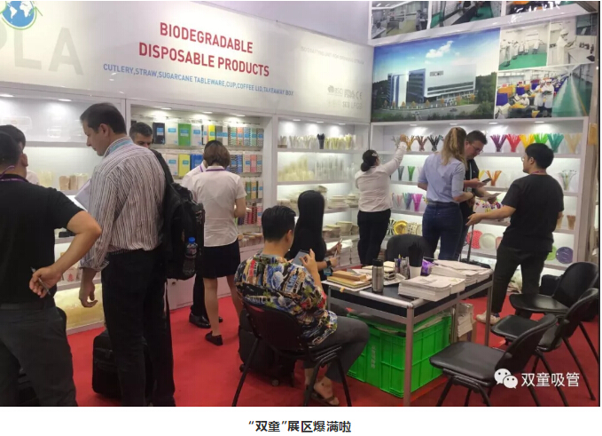 瞧!“雙童”展區(qū)展示著各式各樣的可食用淀粉吸管,它們成為了此次展會(huì)的焦點(diǎn),大批新老客商駐足詢價(jià),現(xiàn)場真是擠爆啦!