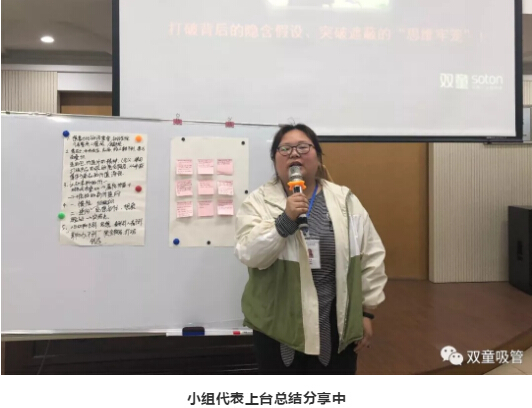 以上片段,是“雙童”第274期行政學(xué)習(xí)會(huì)上復(fù)盤學(xué)習(xí)的精彩視頻。在當(dāng)天的學(xué)習(xí)會(huì)上,所有同學(xué)被分為7個(gè)小組,每位成員開動(dòng)腦筋,總結(jié)提煉出本小組觀點(diǎn)后派代表分享,從而和其他小組成員進(jìn)行思想交流和思維碰撞!