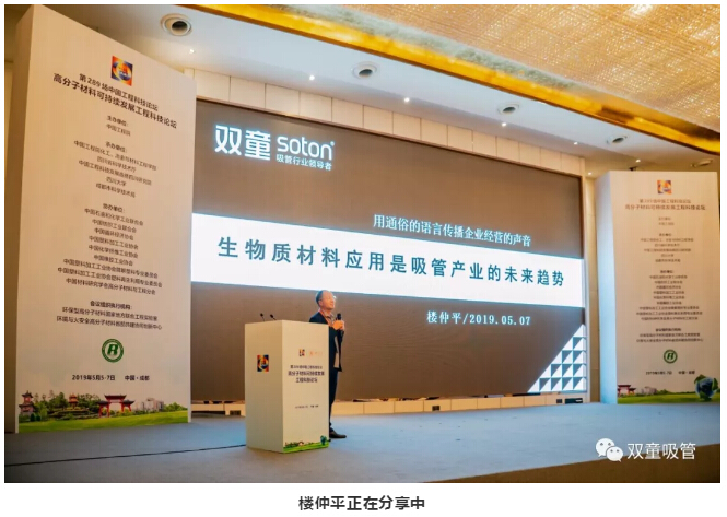 在這樣“談笑有鴻儒,往來(lái)無(wú)白丁”的重要場(chǎng)合,所有院士的分享都采用了英文課件,信息量超大。作為受邀分享嘉賓之一,“雙童”樓仲平也從吸管產(chǎn)業(yè)角度出發(fā)分析在禁塑大趨勢(shì)下吸管行業(yè)的發(fā)展方向,為大家?guī)?lái)了《生物降解材料應(yīng)用是吸管產(chǎn)業(yè)的未來(lái)發(fā)展趨勢(shì)》主題分享!