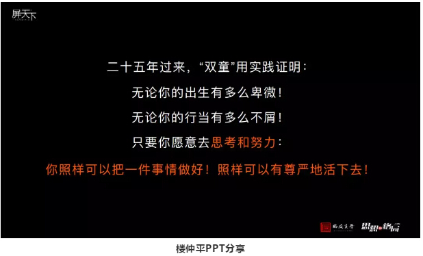因此,樓仲平引導企業(yè)主們:如果你的企業(yè)還很小、很卑微,一定不要對自己失去信心,要理解商業(yè)的積累。無論你的行業(yè)有多小,只要你意愿思考和努力,努力代表認真,但前提在于思考。從各個角度去思考,認真的去履行,是可以改變命運的,改變?nèi)魏嗡^“不好”的產(chǎn)業(yè),所謂的“不好”并不存在?!白鍪裁础辈⒉恢匾?,重要的是“怎么做”!