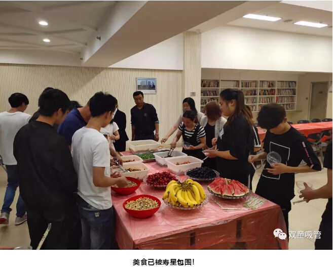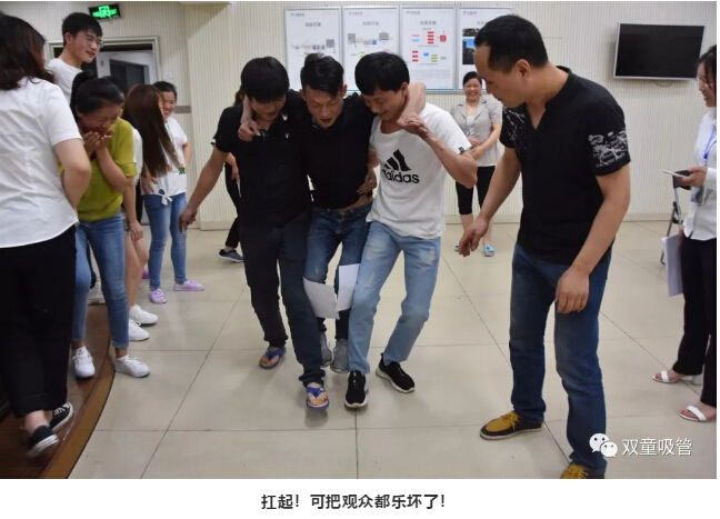 吃飽喝足之后,就是激動人心的游戲環(huán)節(jié)啦!最精彩的就是夾紙跑游戲,要求三個人用腿部夾送兩張紙完成游戲。腦洞大開的壽星們想出了把中間的人扛起來的辦法。給壽星們機智鼓掌!