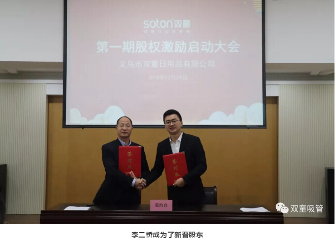 而在2018年12月19日,在“雙童”第一期股權(quán)激勵(lì)啟動(dòng)大會(huì)上,“雙童”首批12位核心員工正式簽約成為“雙童”的經(jīng)營(yíng)伙伴,我們以股份合伙、業(yè)務(wù)合伙等“合伙激勵(lì)”的 方式讓優(yōu)秀人才變?yōu)楹匣锶耍寙T工和組織的目標(biāo)長(zhǎng)遠(yuǎn)契合、共同生長(zhǎng)、共享價(jià)值創(chuàng)造的有效延伸!