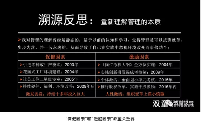 “雙童”樓仲平也曾在學(xué)習(xí)會(huì)上談到,員工與組織的關(guān)系就是一種彼此交換、彼此協(xié)作、彼此默契、彼此期望的雇傭關(guān)系,所以本質(zhì)上就無(wú)法像對(duì)待“家人”一樣對(duì)待員工,否則就會(huì)出現(xiàn)雙方彼此期待的背離,從而給雙方帶來(lái)傷害。