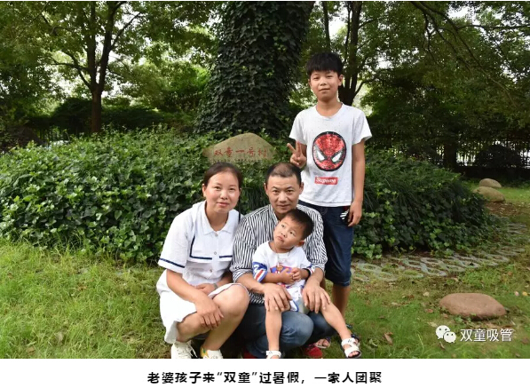 所以,每當?shù)绞罴?,張乃樓都會將老婆孩子接?/span>“雙童”團聚。今年也不例外,6月份他回家將老婆和兩個孩子接到“雙童”。