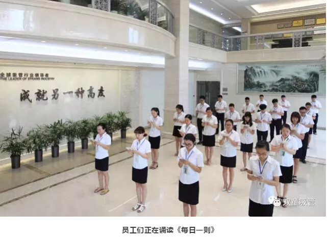 首先,就是晨讀環(huán)節(jié)。“雙童”所有員工在上班之前都會在統(tǒng)一時間誦讀“雙童”的企業(yè)文化叢書——《每日一則》。