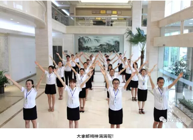 除了精神上要得到提升之外,我們的身體素質(zhì)也非常重要!每天,在晨讀環(huán)節(jié)結(jié)束之后,我們都會進行早操活動。俗話說,“一年之際在于春,一天之際在于晨”。在“雙童”行政大廳,員工們列隊整齊,精神飽滿,氣宇軒昂,伴著豪邁的音樂,用整齊劃一的動作做起早操,形成了一道靚麗的風(fēng)景線。
