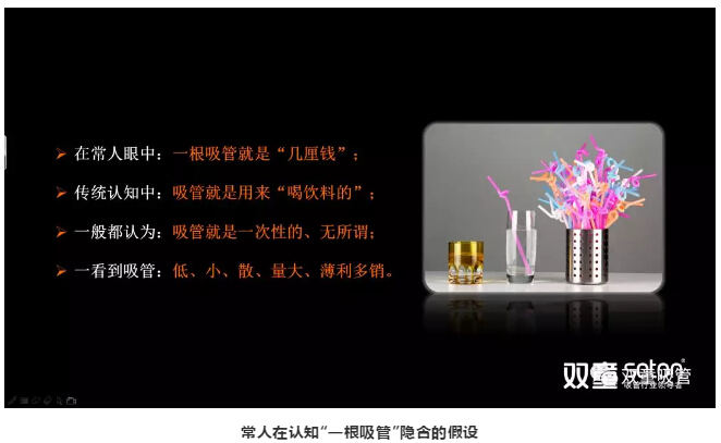 實際上,上述認知中恰恰隱含著“假設”!比如:常人在看待“一根吸管”時往往就會認為吸管就是幾厘錢;吸管就是“喝飲料的”;吸管薄利多銷……