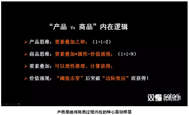 所以, 商品并非只是產(chǎn)品本身,還存在著遠大于產(chǎn)品本身的“附加屬性”,“商品”是產(chǎn)品疊加“附加屬性”之和的“涌現(xiàn)和綻放”!