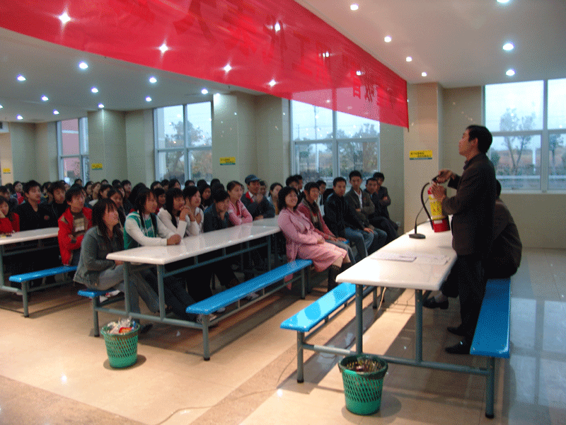 上圖為安全消防知識宣傳大會現(xiàn)場,消防隊長對消防器材知識的講解