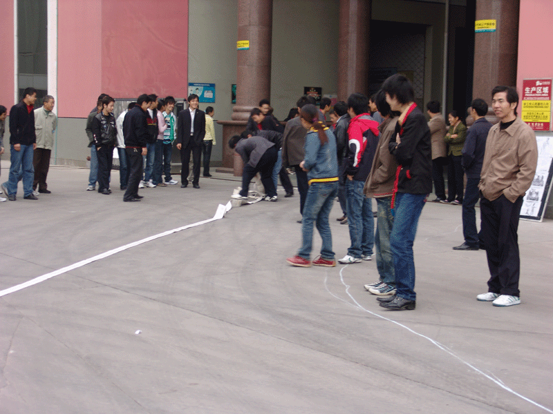 上圖為員工使用干粉滅火器進(jìn)行滅火比賽現(xiàn)場