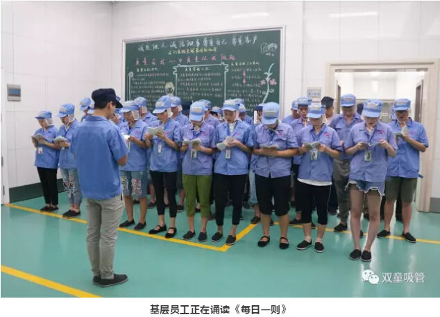 當(dāng)然,“雙童”的這些文化標(biāo)語(yǔ)除了在墻面展示之外,也被收錄到“雙童”企業(yè)文化叢書《每日一則》當(dāng)中,每天誦讀一篇《每日一則》成為“雙童”員工們的必修課,哪怕是在車間里工作的基層員工也是每天雷打不動(dòng)地要誦讀哦!