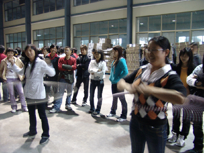 大會結(jié)束后,由工會劃撥費用,并組織全體員工的娛樂活動開始了,首先進行的是拔河比賽;拔河比賽按照口杯車間與包裝車間,吸管車間甲班與乙班,再由各小組第一名之間比賽,供銷部與各科室比賽。