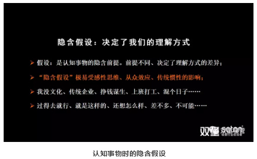 緊接著,樓仲平引導大家突破思維遮蔽,打破隱含假設!
