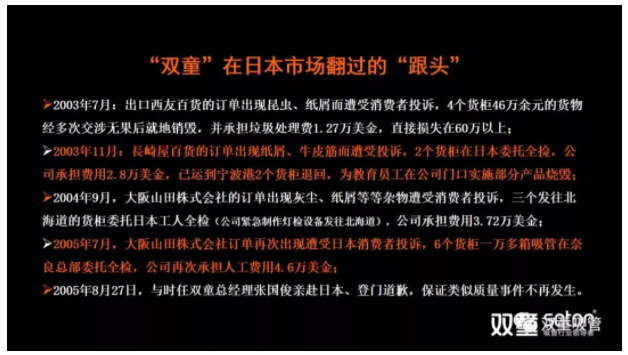 但廁所改善了,重大質(zhì)量事故卻還在不斷發(fā)生!前前后后七八年的時間里,“雙童”在日本市場栽了不少“跟頭”,虧損了大量資金,在這樣的情況下到底選擇“死磕”還是“放棄”?